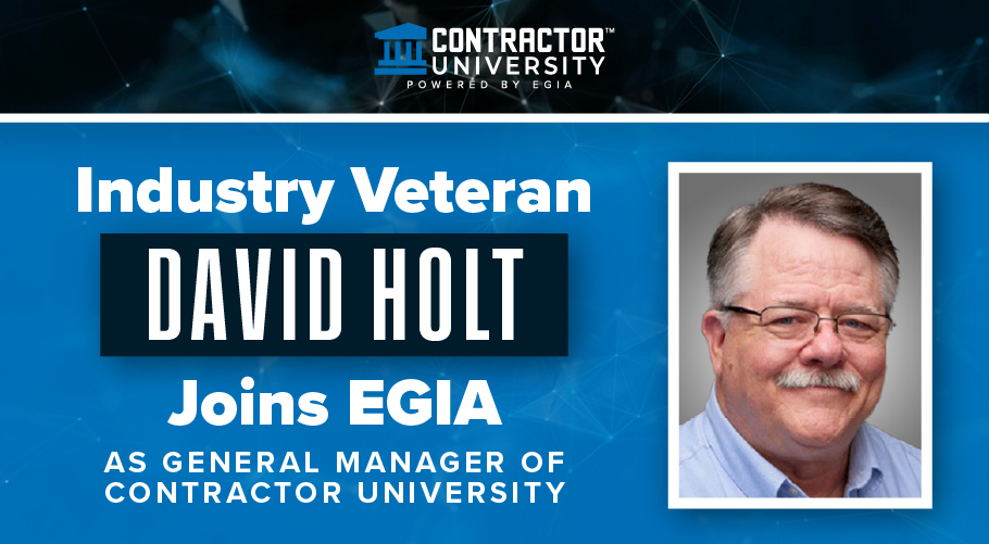 David Holt Joins EGIA Contractor University as General Manager